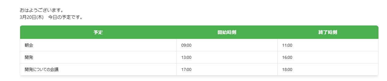 時間帯の調整に苦戦しました。Outlookの予定は世界標準時間(UTC)で登録されているため、日本時間から9時間引いて取得する必要がありました。